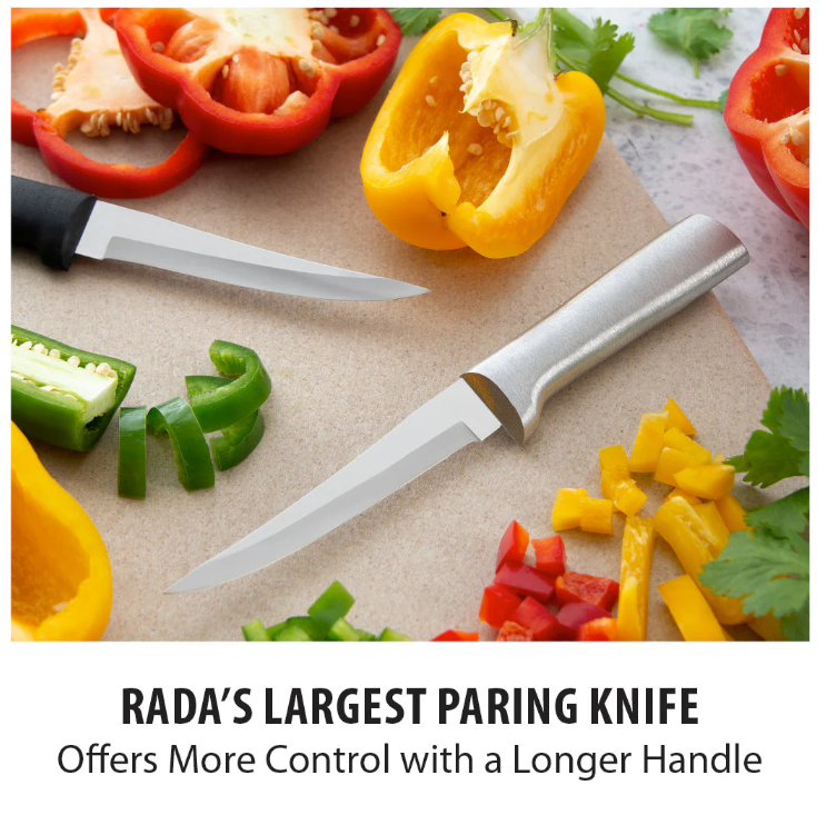 The Super Parer is the largest paring knife manufactured by Rada Cutlery, and it’s one of the most useful tools in any kitchen! The larger size results in greater comfort and versatility, especially when using it for a long period of time.